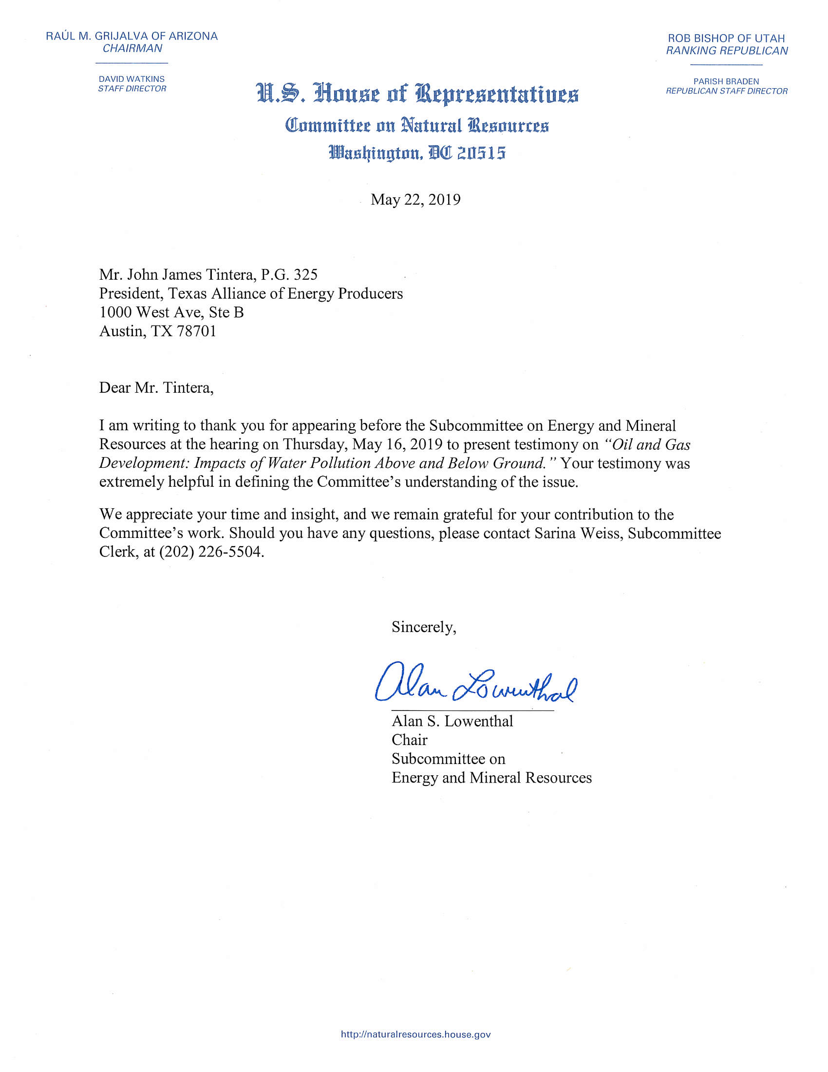 On Thursday, the House Subcommittee on Energy and Mineral Resources will hold a hearing to investigate whether oil and gas drilling causes water pollution. It's a very important topic. If drilling pollutes our drinking water, new restrictions would obviously be needed to safeguard public health.